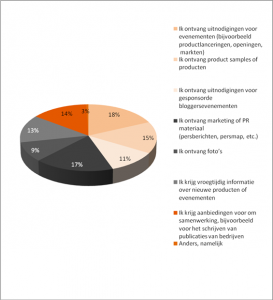 Volgens de IPREX BlogBarometer 2014 wordt de invloed van bloggers eindelijk op waarde geschat door het Nederlandse bedrijfsleven. Vooral de ‘blog PR’ neemt op dit moment toe in ons land. Meer dan 90% van de 1.350 bloggers die meededen aan het onderzoek geeft aan met regelmaat actief benaderd te worden met informatie van bedrijven. In bijna 20% gaat die informatie om persberichten en evenementuitnodigingen. Vooral mode en food bloggers ontvangen vaak geld voor het alleen al aanwezig zijn op een persevenement en voor een posting op hun blog. Het bedrag ligt dan tussen de €250,- en €350,-.